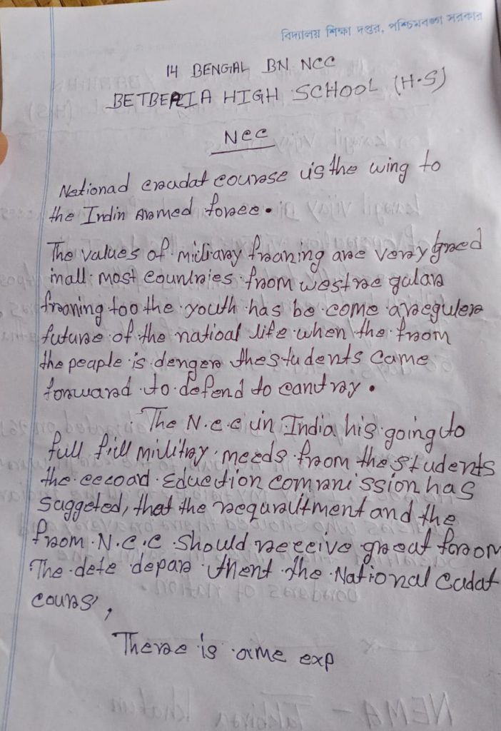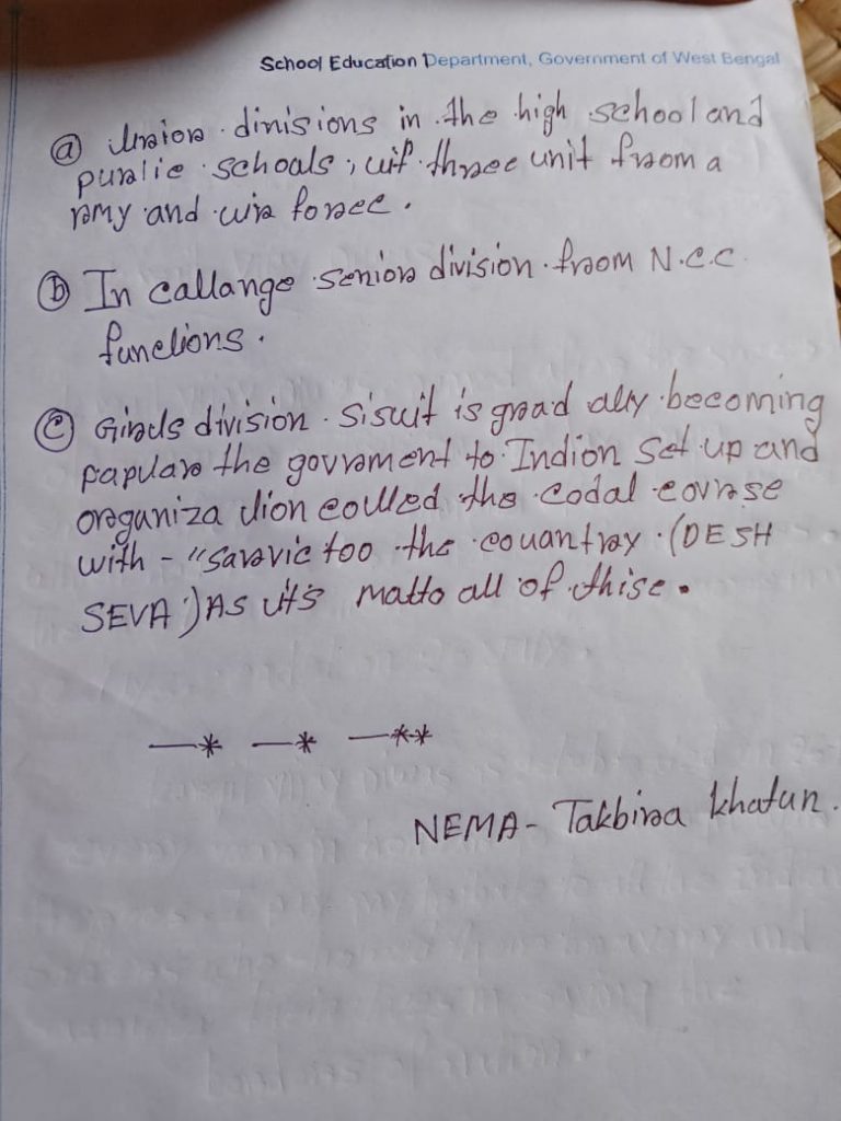 Regiment No - WB20SDA198723. RANK - CADET. BATTALION - 51 BENGAL BATTALION NAME - PRASANTA PARAMANIK. COLLEGE - MAHATMA GANDHI COLLEGE ( LALPUR, PURULIA )