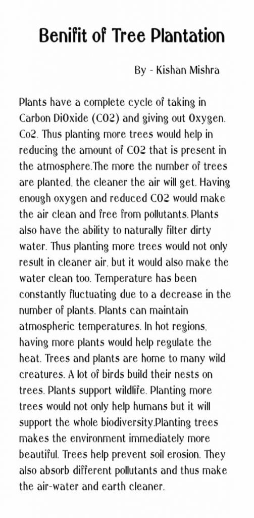 Artical Benifit of Tree Plantation