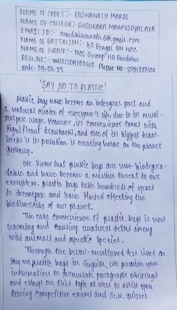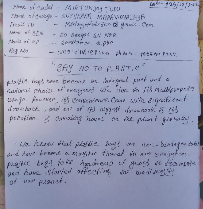 50 BENGAL BN NCC Guskara Mahavidyalaya CDT - MIRTUNJOY TUDU Reg- WB21SDA198440