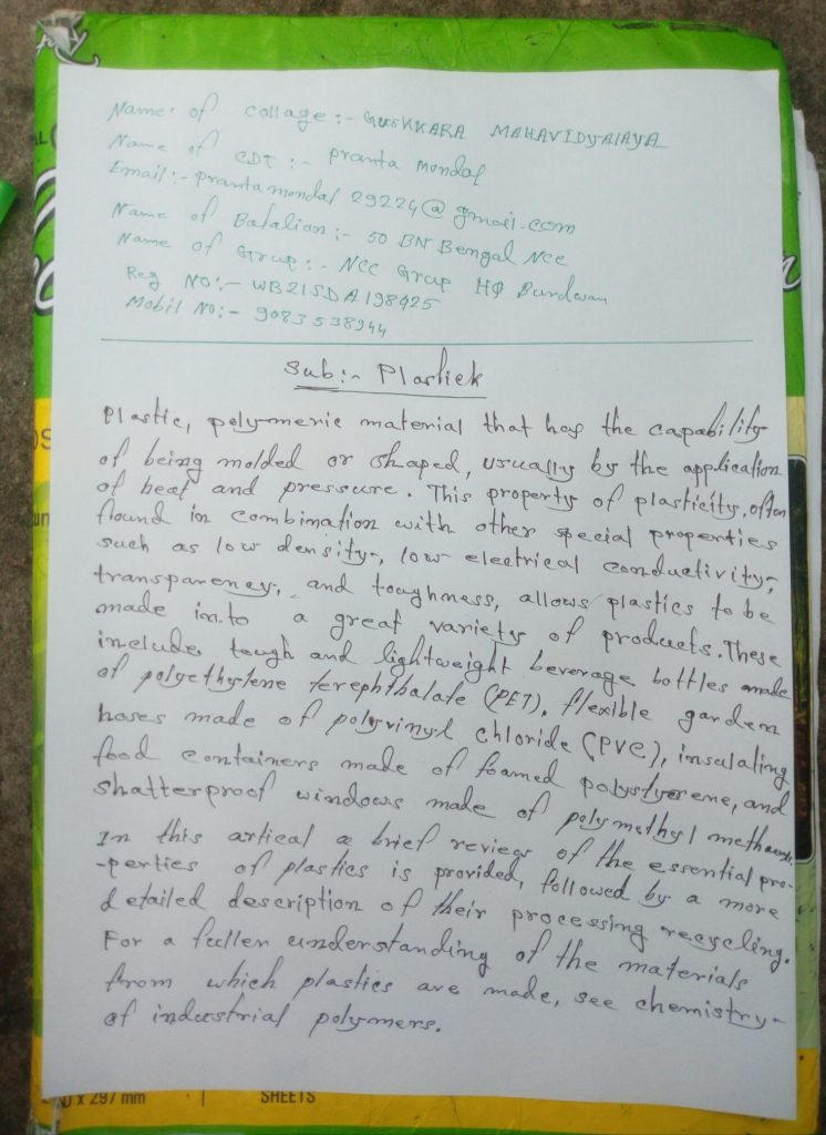 WB21SDA198425,Cadet: Pranta Mondal, College : Guskara Mahavidyalaya, 50 BN Bangal NCC WB&SIKKIM