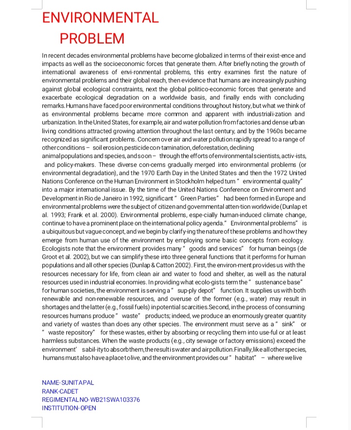 Name - Sunita Pal Rank - Cadet Regimental number - WB21SWA103376
