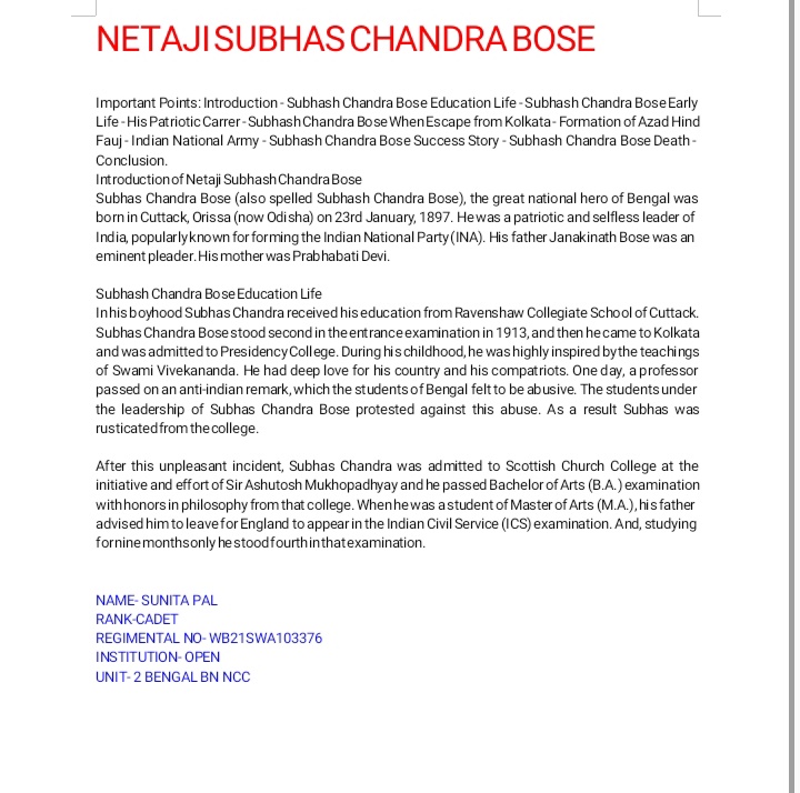I am Abhoy Mondal from kalayani ITI college rank -CPL 49 Bengal battalion Ncc
