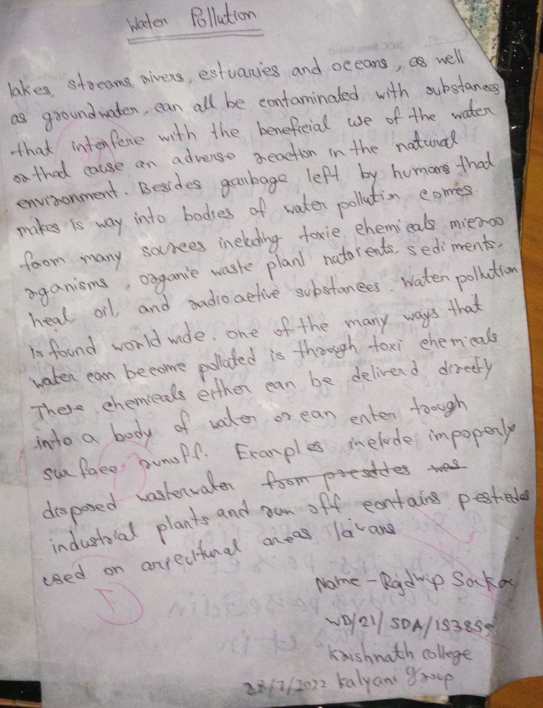 Water pollution Rajdwip sarkar 9bengal battalion ncc Wb/21/sda/153859 Krishnath college Kalyani group West bangal and sikkim director
