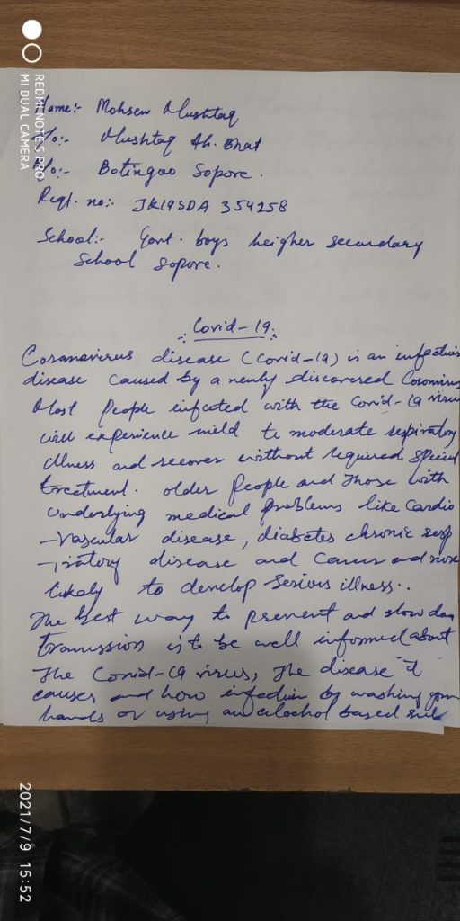 Sajid shabir JK20SDA/354190 Boys higher secondary Sopore