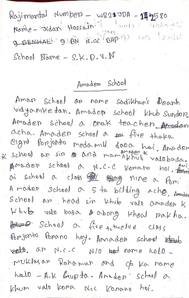 NAME- JIBAN HOSSAIN SCHOOL- SADIKHAN DEARH VIDYA NIKETAN UNIT- 9 BENGAL BN NCC GROUP- KALYANI GP DTE- WESTBEGAL & SIKKIM