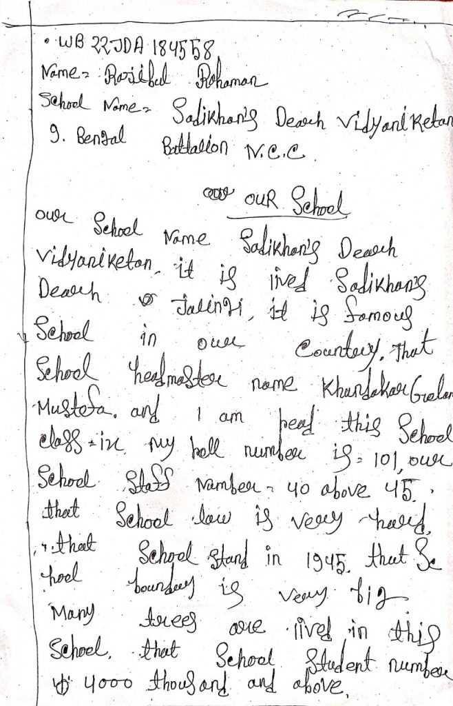 NAME- RAJIBUL RAHAMAN SCHOOL- SADIKHAN DEARH VIDYA NIKETAN UNIT- 9 BENGAL BN NCC GROUP- KALYANI GP DTE- WESTBEGAL & SIKKIM