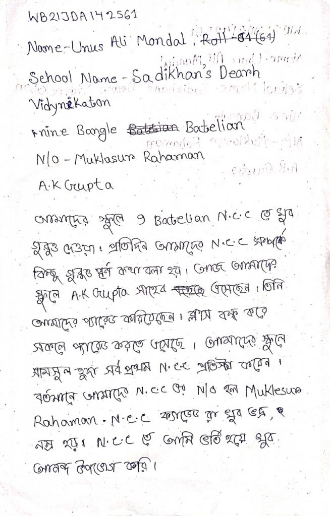 NAME- UNUS ALI MONDAL SCHOOL- SADIKHAN DEARH VIDYA NIKETAN UNIT- 9 BENGAL BN NCC GROUP- KALYANI GP DTE- WESTBEGAL & SIKKIM