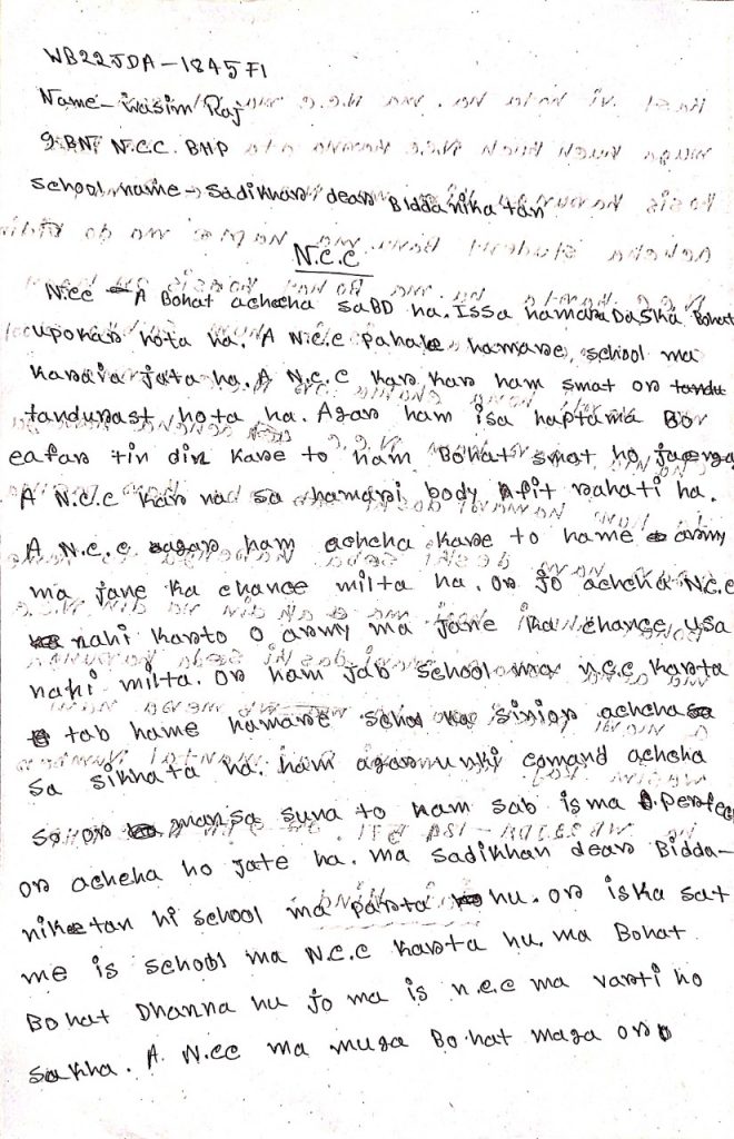NAME- MD SAMIM SK SCHOOL- SADIKHAN DEARH VIDYA NIKETAN UNIT- 9 BENGAL BN NCC GROUP- KALYANI GP DTE- WESTBEGAL & SIKKIM