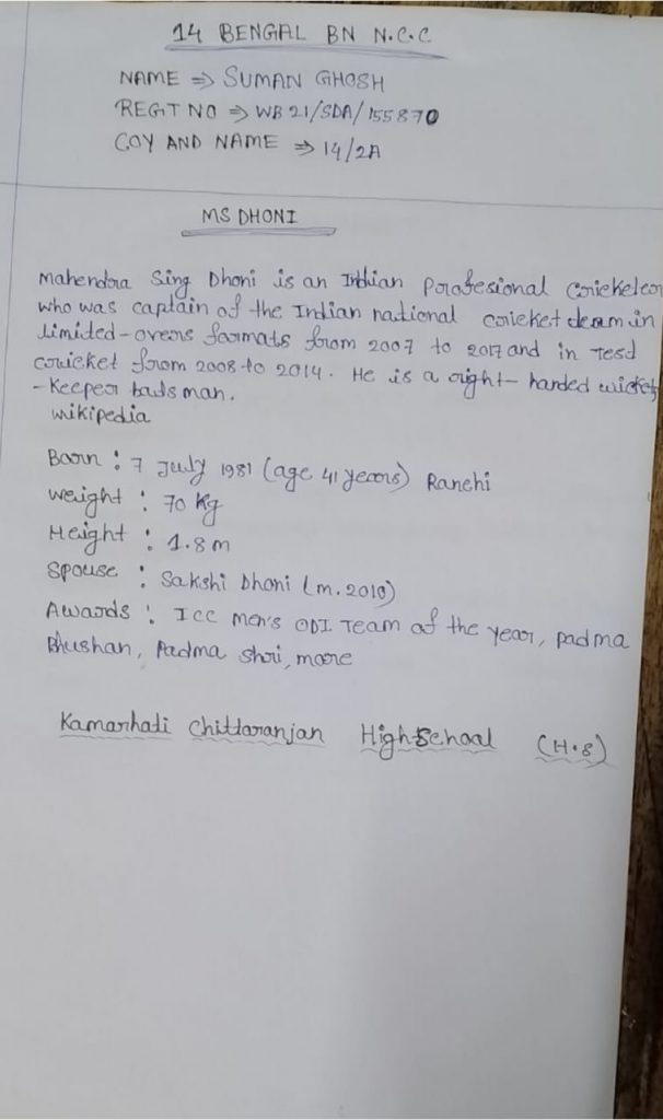 Name CDT Jayanta Mondal Reg WB21SDA152762 College S.C college Habra Unit 6 BENGAL BN NCC