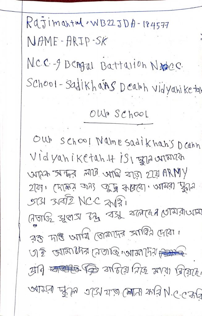 NAME- ARIP SK SCHOOL- SADIKHAN DEARH VIDYA NIKETAN UNIT- 9 BENGAL BN NCC GROUP- KALYANI GP DTE- WESTBEGAL & SIKKIM