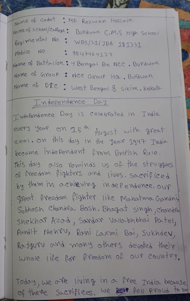 Name- Nityananda Das Regimental no- WB21SDA197969 Rank - Cadet Battalion - 50 Bengal Bn NCC Name of Group - Group HQ Bardhaman College- Visva Bharati University
