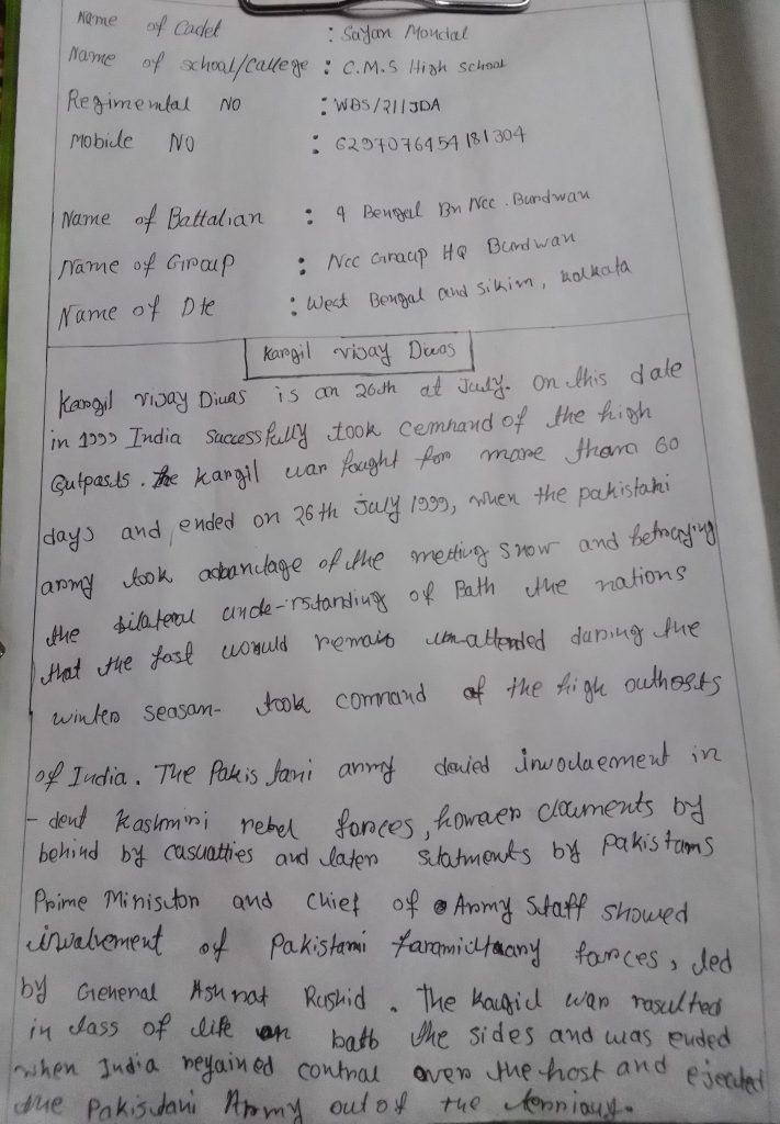 I am cadet megha poddar from 19 Bengal BN NCC, kol-B group West Bengal and sikkim DTE I am persuing BA Hons from khudiram Bose Central College