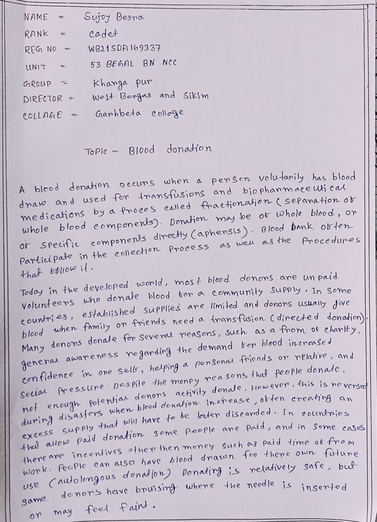 Reg No - WB21SWA111524 Rank - Cadet Name - Apurba Saini Unit - 31 Bengal Bn NCC