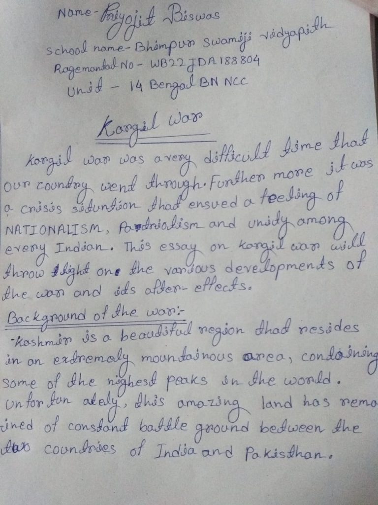 I am a NCC jda cadet of 14 Bengali BN NCC. My Regimental number and name is WB 22jda188804,Priyojit Biswas. My school name is Bhimpur Swamiji Vidyapith.