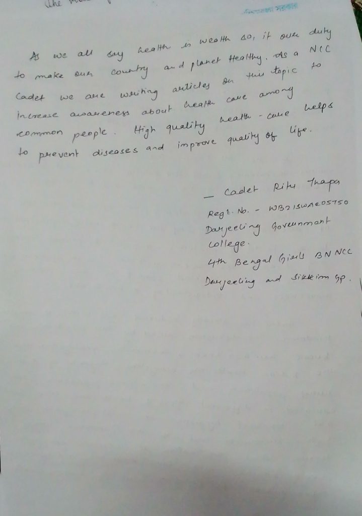 Written by Cadet Ritu Thapa From 4 Bengal Girls BN NCC Darjeeling Government College
