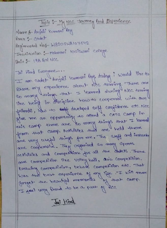 Name:Cadet Mandip kumar sah Regimental no.:-WB21SDA111454 BHAWANIPUR EDUCATION SOCIETY COLLEGE