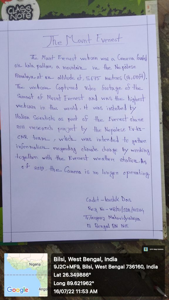 Name:Dibyayan Das Regimental Number:WB21SDA123723 Rank:Cadet