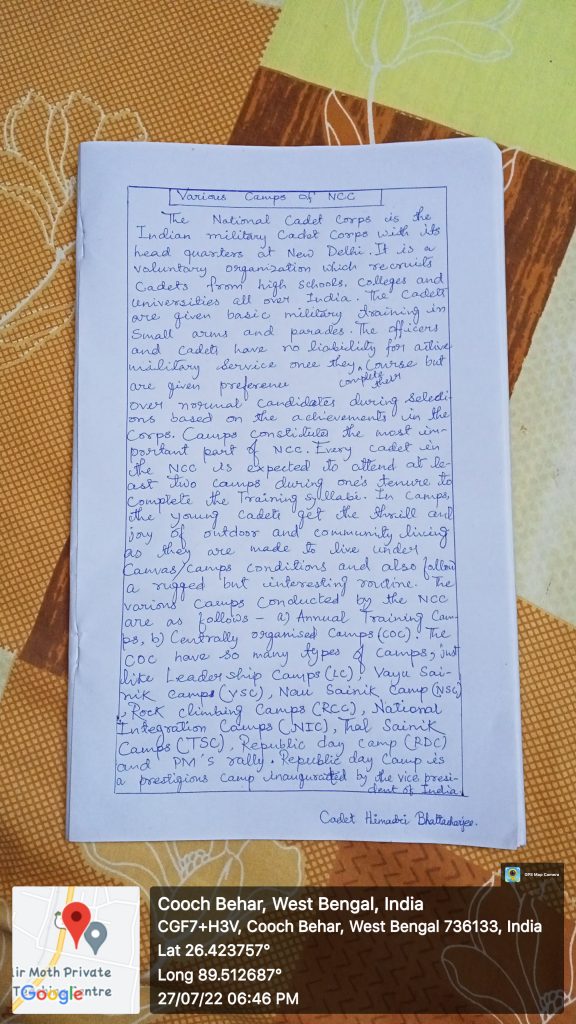 I'm cadet Himadri Bhattacharjee of 1/13 Bengal BN NCC