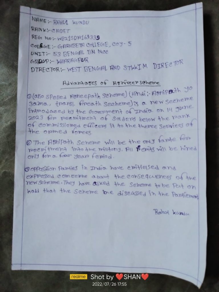 I am Cadet Rakesh Mukherjee from 19 BNG BN , WB & SK DTE.