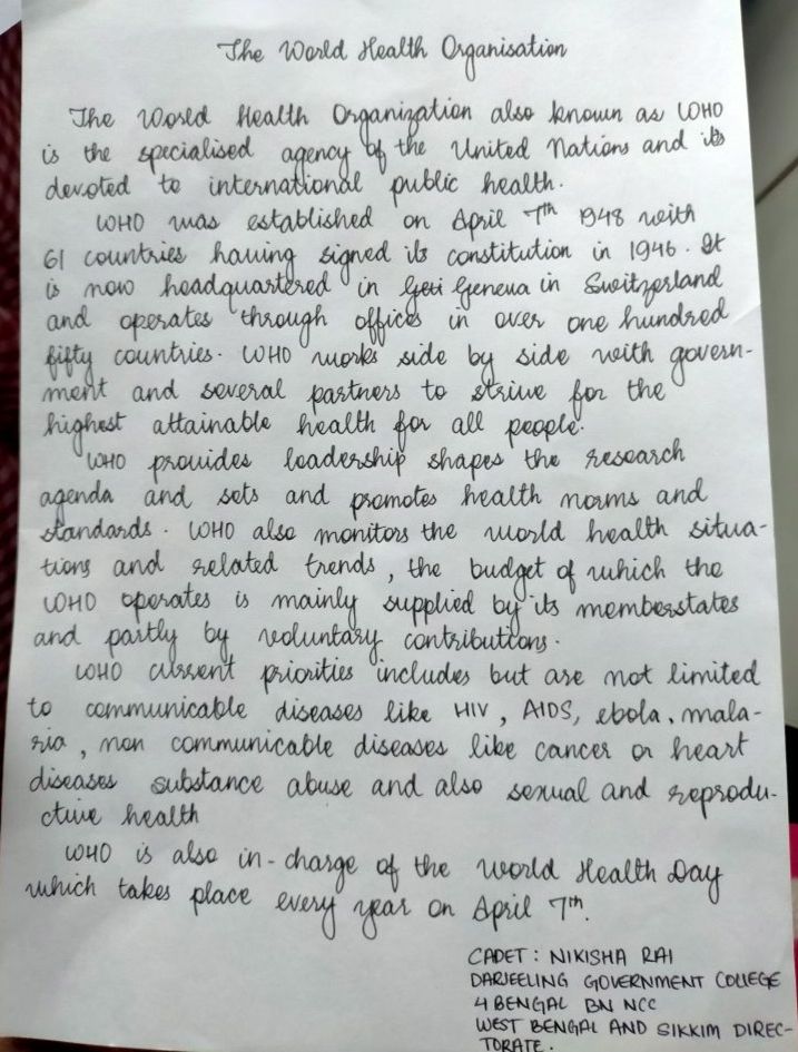 Written by Cadet Nandini Rai 4 Bengal Girls BN NCC Darjeeling Government College WB20SWA209365