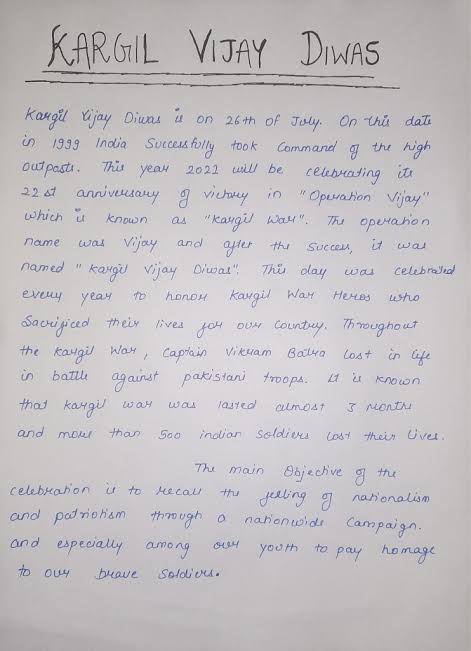 Article On Kargil Vijay diwas Writing by Shraban Kumar Mohanta