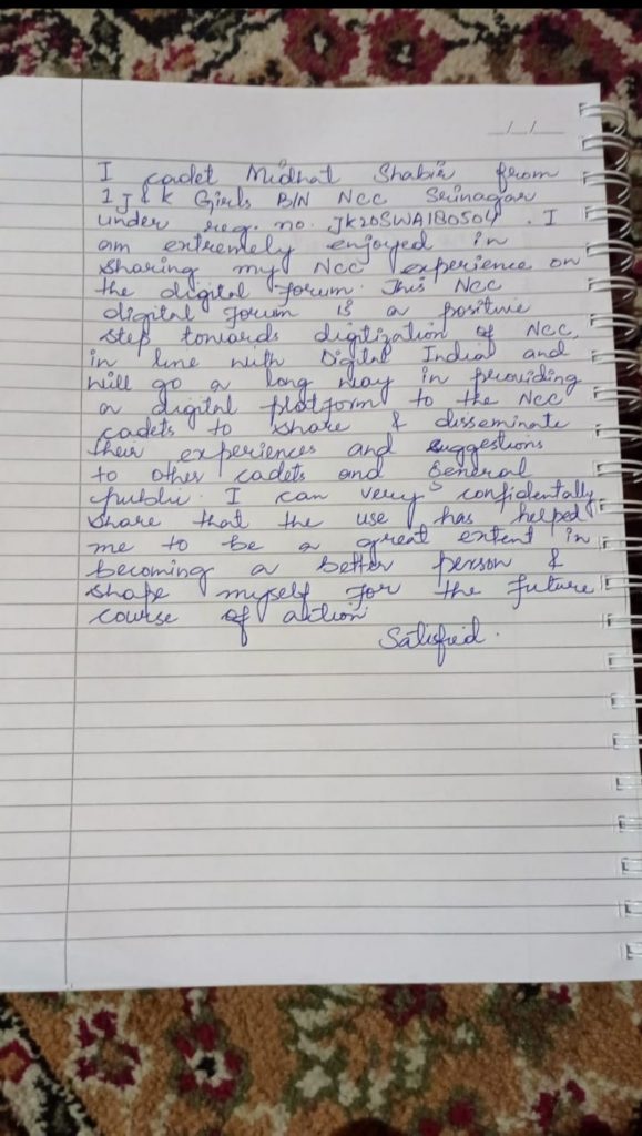 I cadet Midhat shabir 1 j&k Girls BN NCC srinagar from GCW Nawakadl