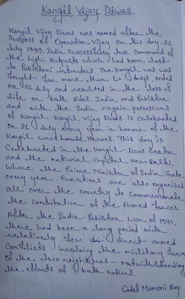 Cadet Gaurav Pradhan Regimental no:WB21SDA214367 16 Bengal Battalion Darjeeling and Sikkim group West Bengal and Sikkim Directorate Date:26/07/2022