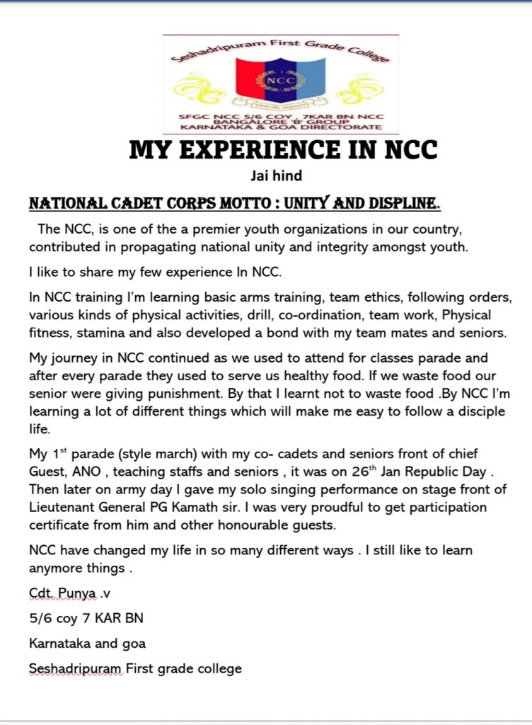 I cadet Vaishali choudhary from GCW Gandhi Nagar Jammu here to share my experience about NCC