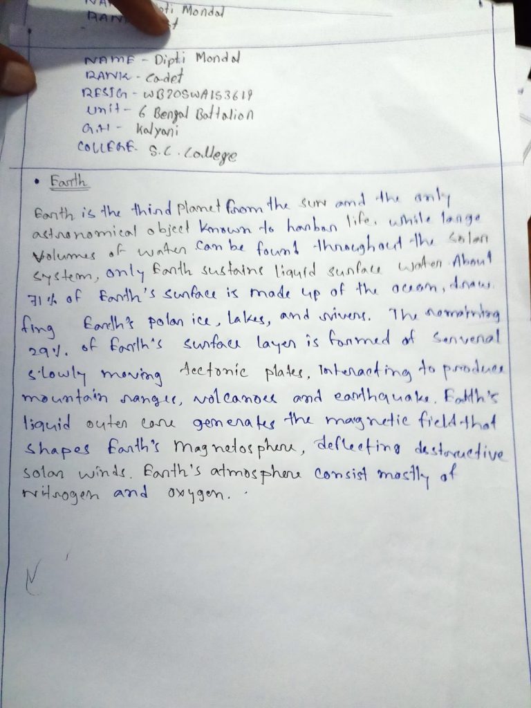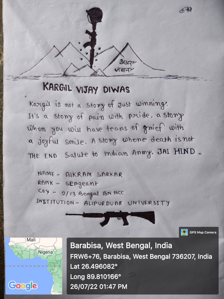 I am Bikram Sarkar from Alipurduar University 2/13 Bengal BN NCC Rank - Sergeant Reg - WB20SDA220849