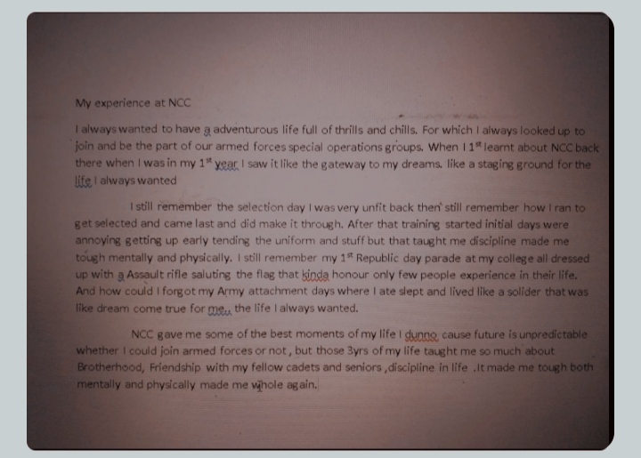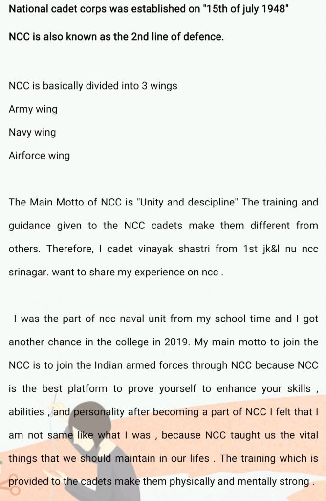 I cadet riya rajput from GCW Gandhi Nagar Jammu here to share my experience about NCC