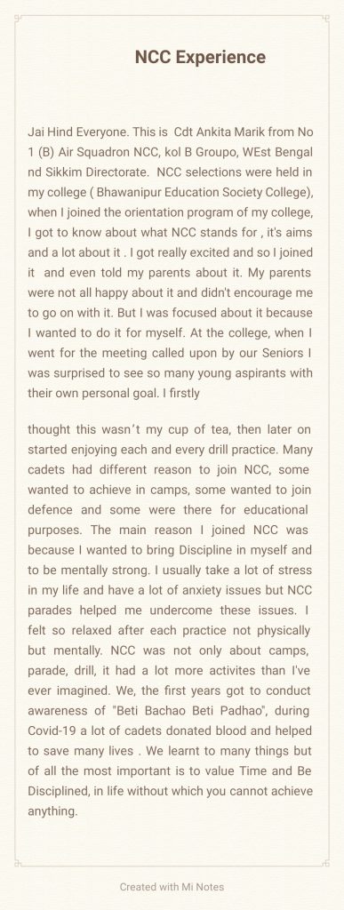JUO Priya Darshani Directorate Jammu Kashmir and Ladakh Unit 2jk(I)Coy. Ncc Bhaderwah