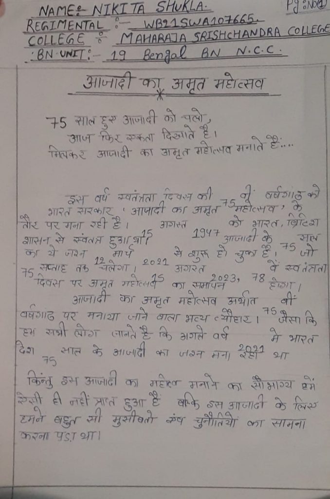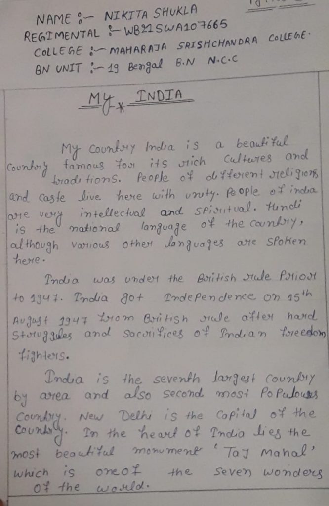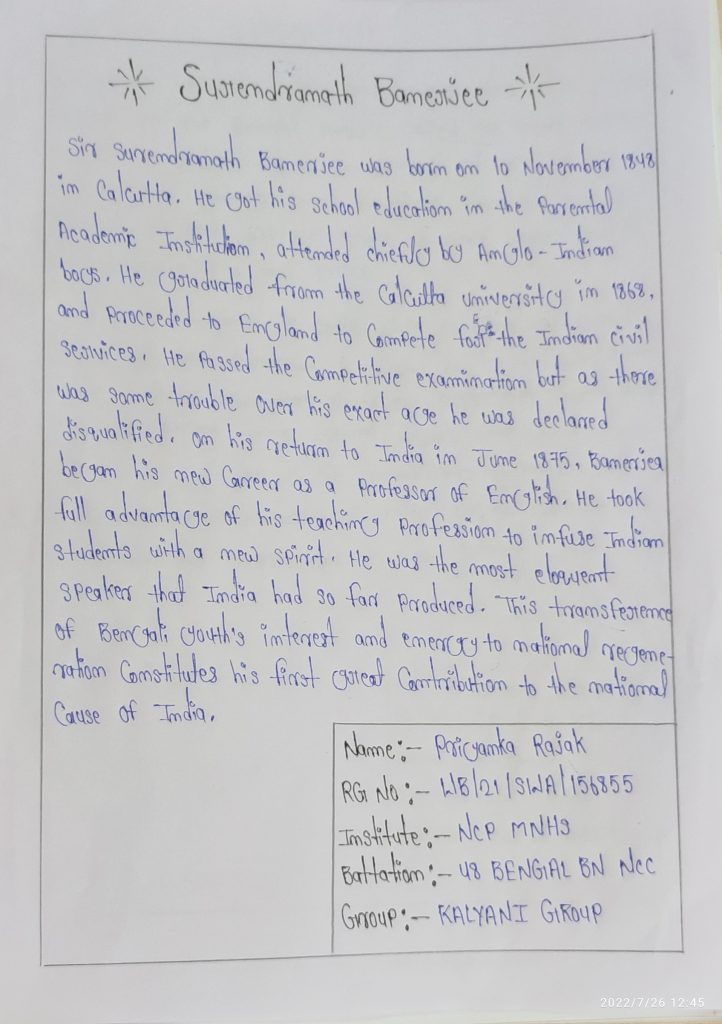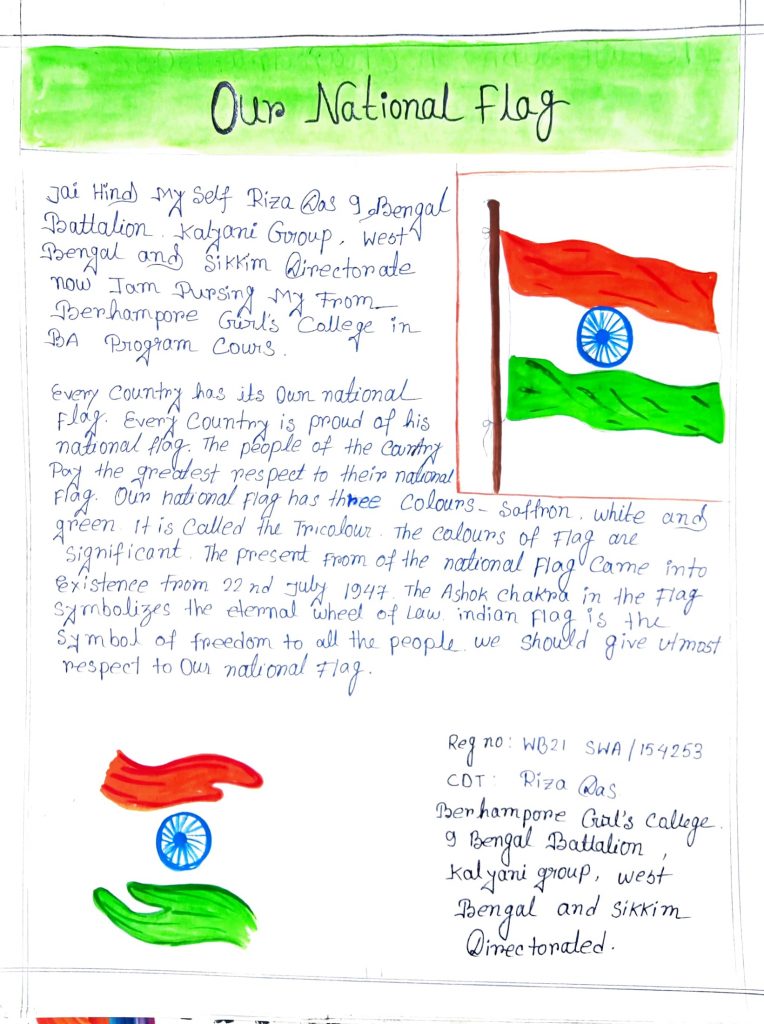 CDT RIZA DAS. REG NO: WB21 SWA/154253 BERHAMPUR GIRLS COLLEGE. 9 BENGAL BATTALION, KALYANI GROUP, WEST BENG AND SIKKIM DIRECTORATE