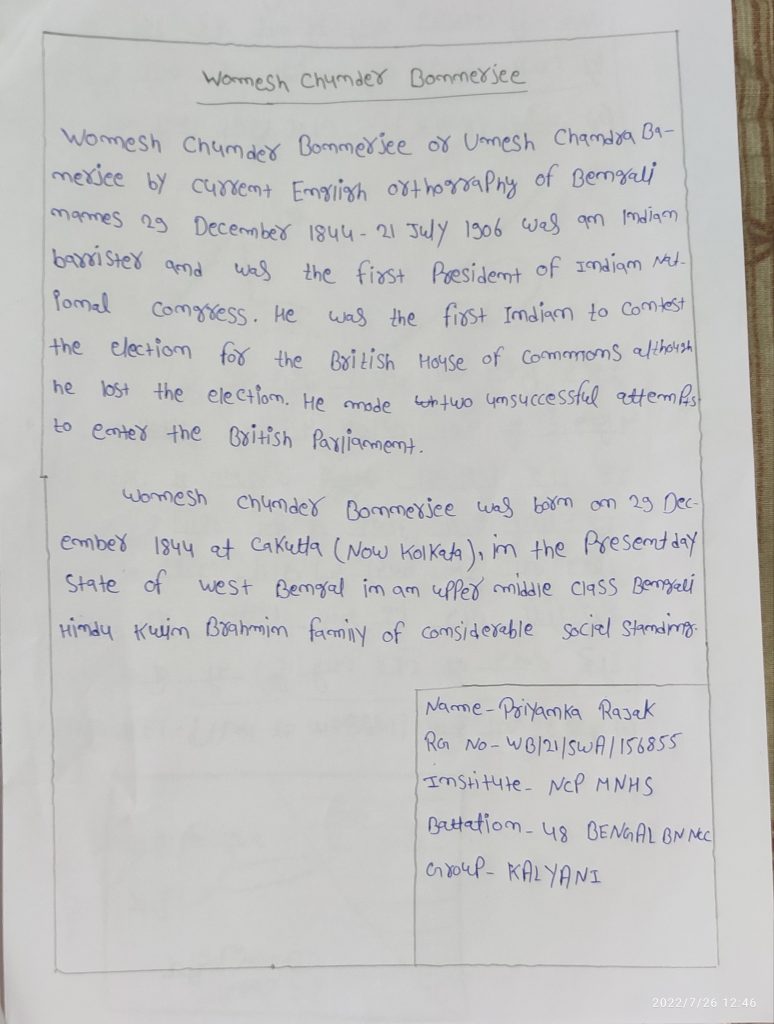 CPL -puja bind Reg no -WBS/ 20/ SWA-212815 From- thakur panchanan mahila Mahavidyalaya