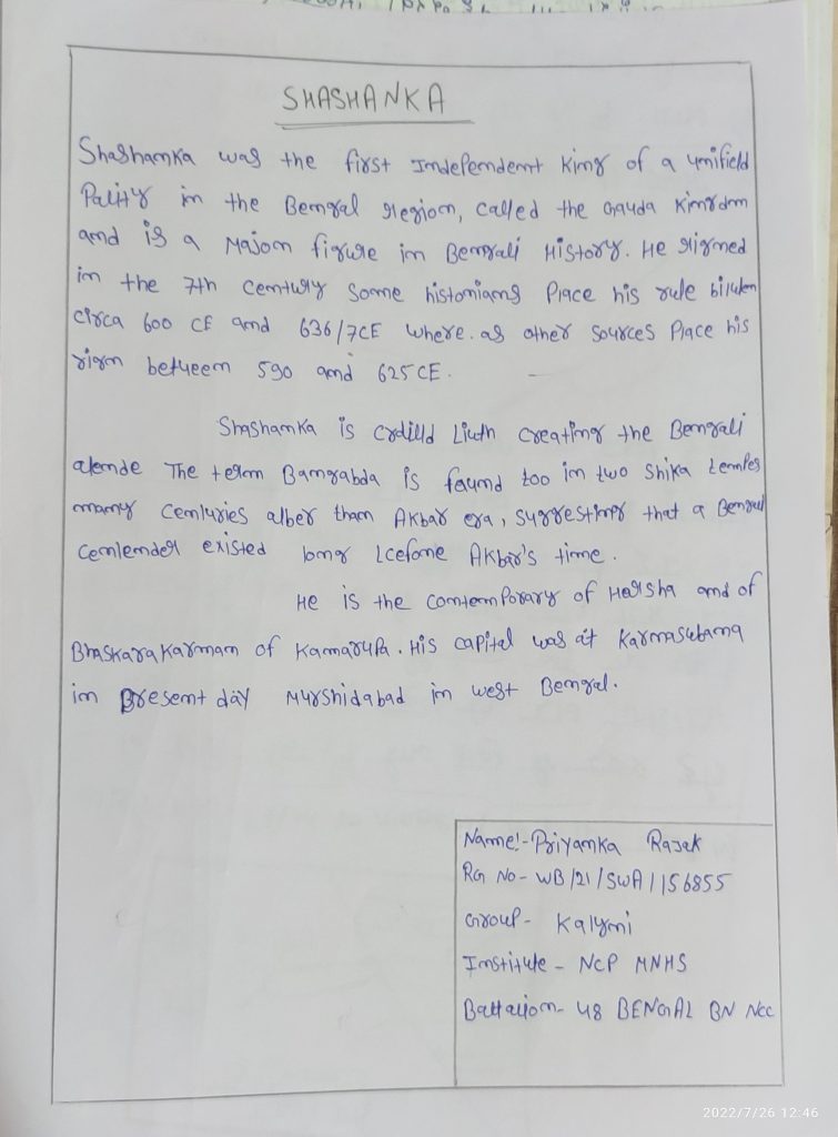 WB21SDA15252622, CDT KAPIL DAS, DB COLLEGE UNDER 6 BENGAL BN NCC