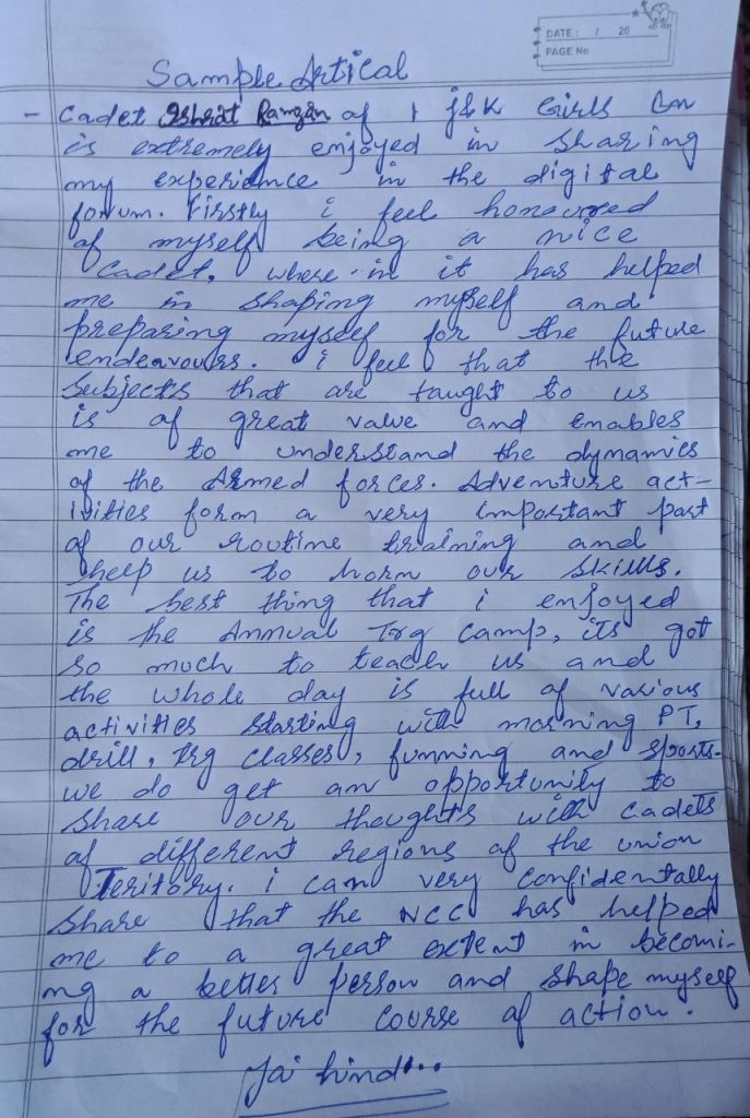 Ishrat Ramzan NCC Cadet J and K Girls B.