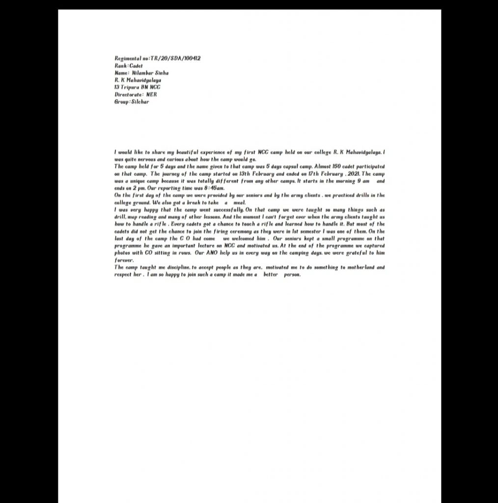 Cadet:-Nilambar Sinha 13 Tripurar BN NCC NER Directorate Silchar Group