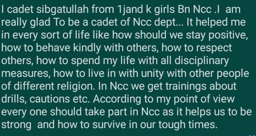Cadet sibgatullah from 1 jandk girls bn ncc