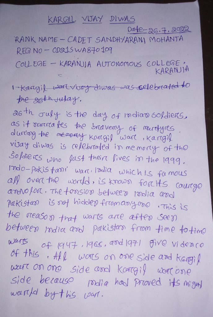I am cadet Dhanesh oraon from alipurduar university coy 2/13 Bengal BN ncc,,this is my short story on kargil Vijay diwas