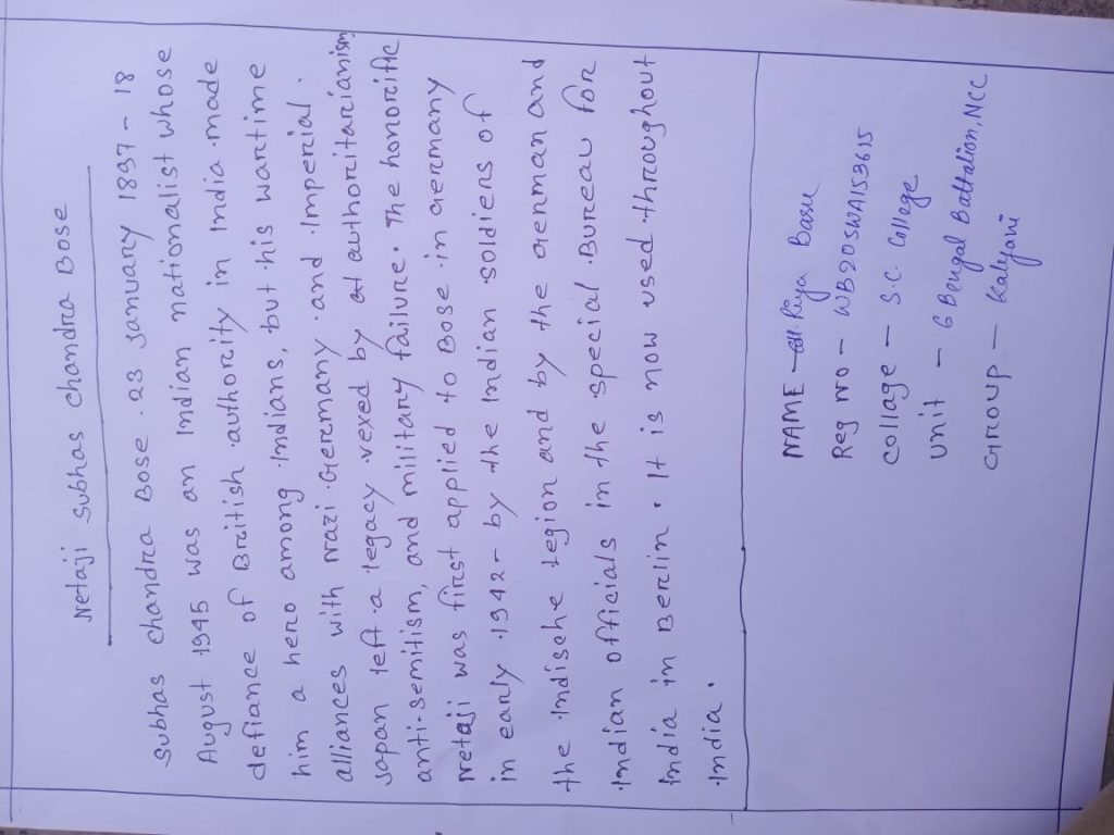 NAME: SAINI BORBO REG NO:WB21SWA214314 UNIT: 16 BENGAL BN NCC
