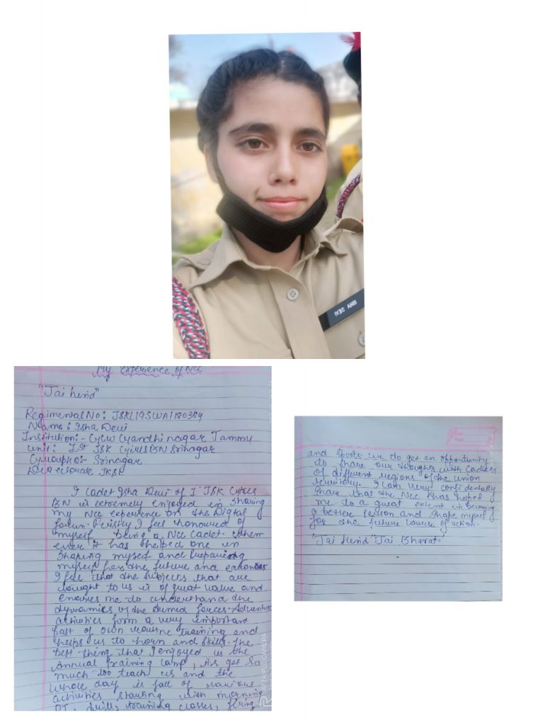 I cadet isha devi from gcw gandhinagar jammu 1j&k girls bn ncc Srinagar. Here to represent my article on the experience of my NCC life from 2019