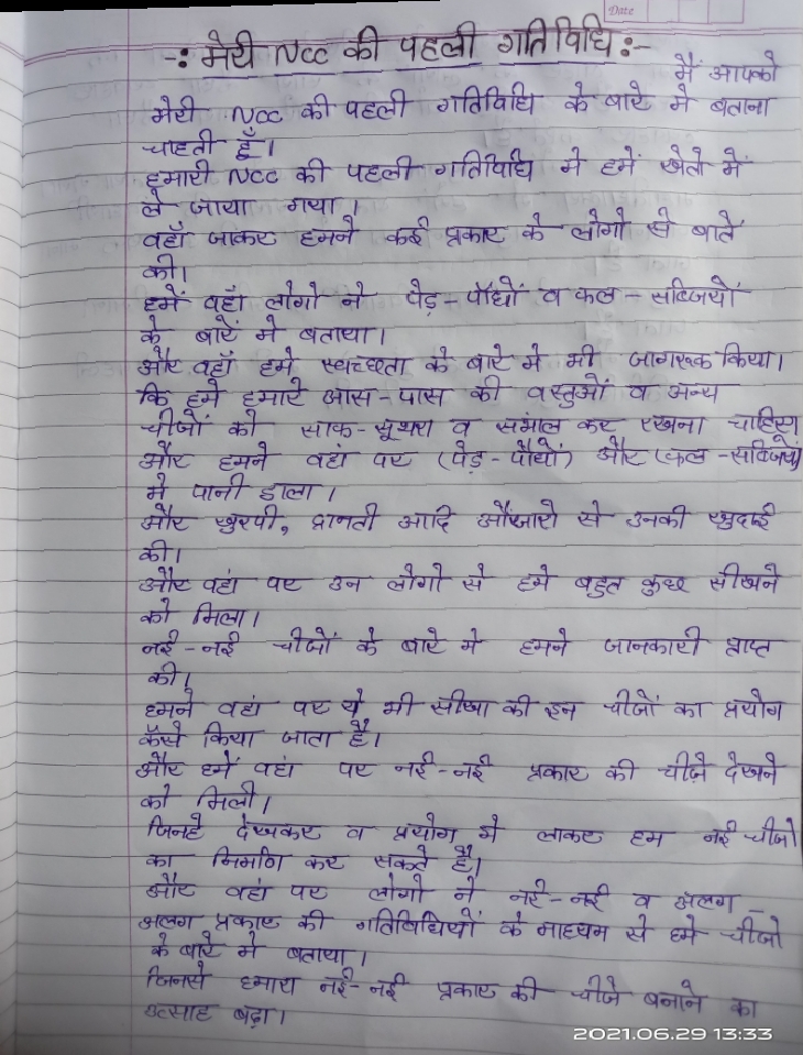 मैं L/CPL ज्योति 3 हरियाणा गर्ल्स बटालियन NCC हिसार से अपनी पहली NCC गतिविधी का अनुभव साझा कर रही हुं।
