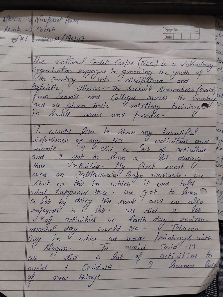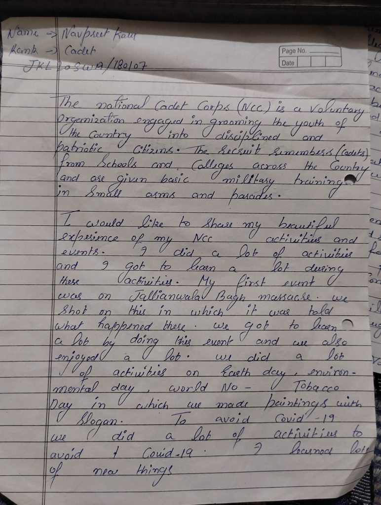 Name :sabah jan From Bandipora Reg. No. Jkl20swa /180106 1jk girls bn. Ncc sgr