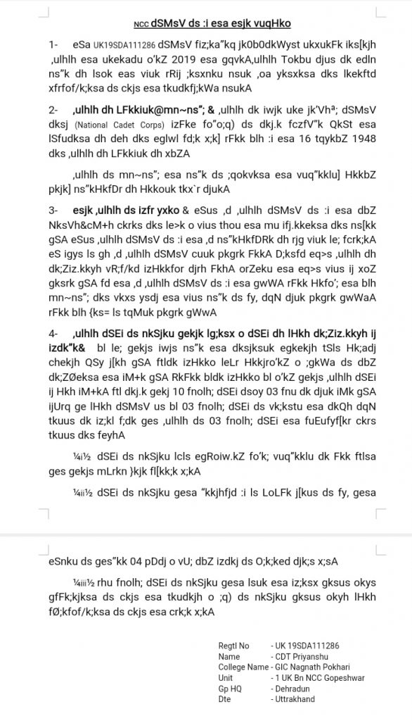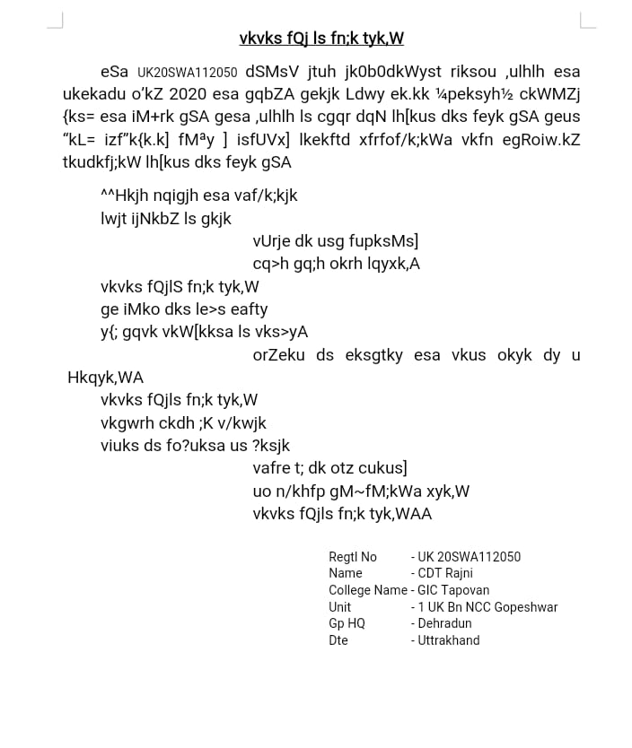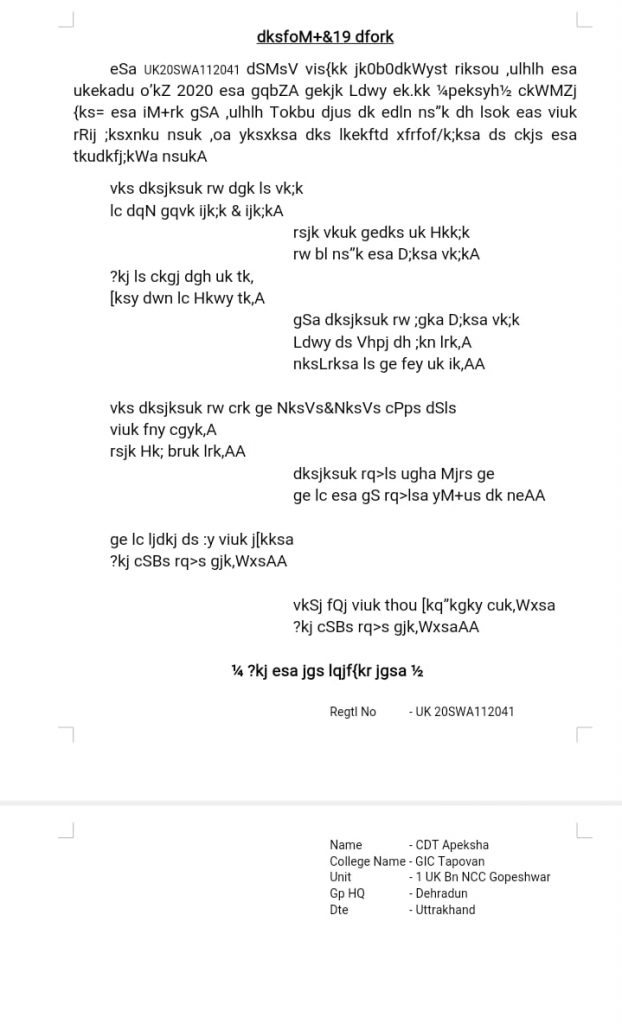 Cadet baby kalindi, no AS18 SWA117515, mariani collage 9assam BD ncc jorhat