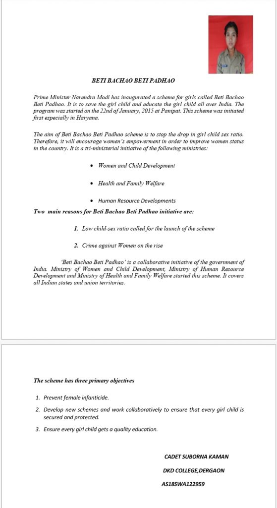 Ajoy Urang AS18/SDA/117483 9Assam BN NCC,Jorhat Group,(NER) Mariani College