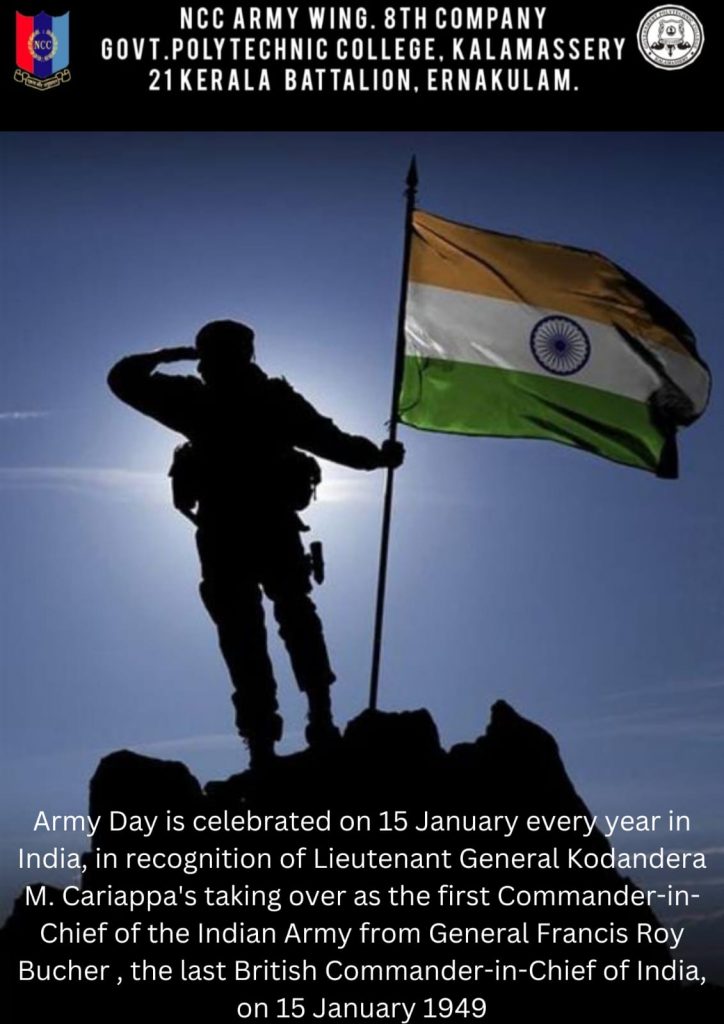 Army Day is celebrated on 15 January every year in India, in recognition of Lieutenant General Kodandera M. Cariappa's (later who became Field Marshal ) taking over as the first Commander-in-Chief of the Indian Army