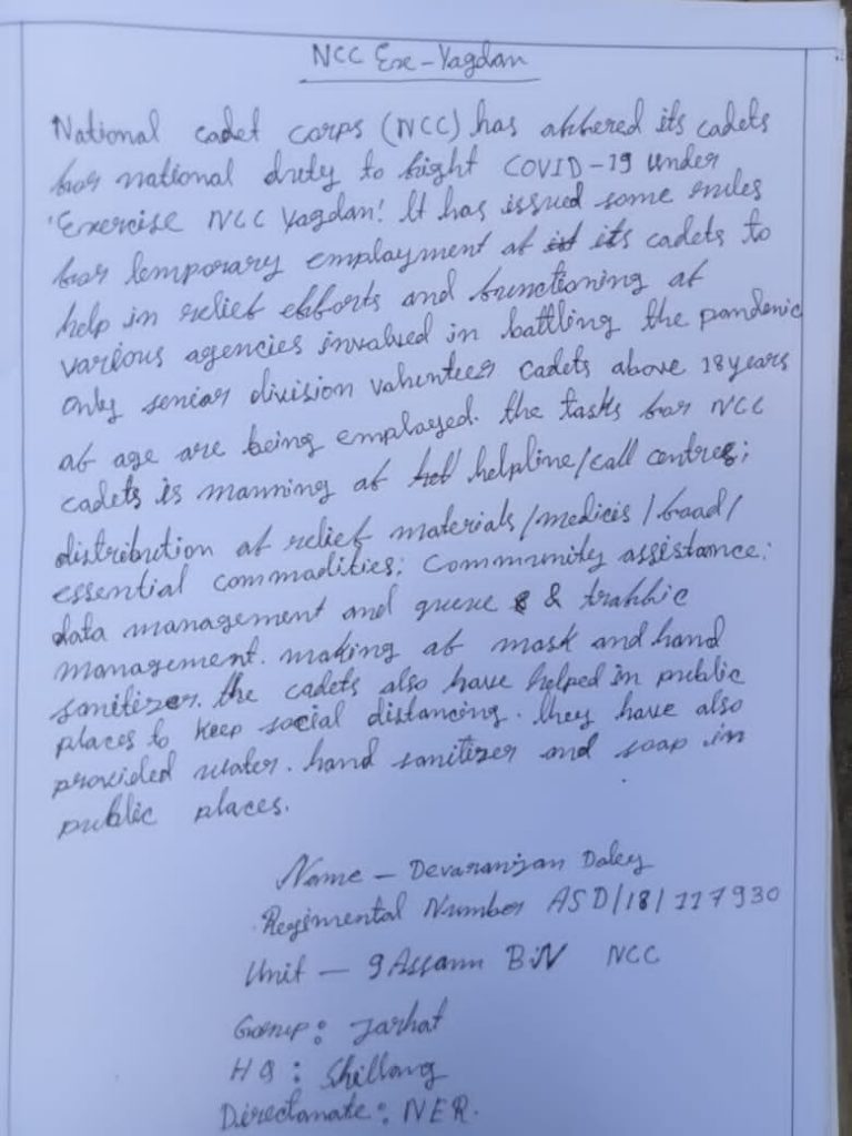 Name: Devarajan Doley Regiment No: AS18/SDA/117930 Unit: 9th ASSAM BN NCC,JORHAT