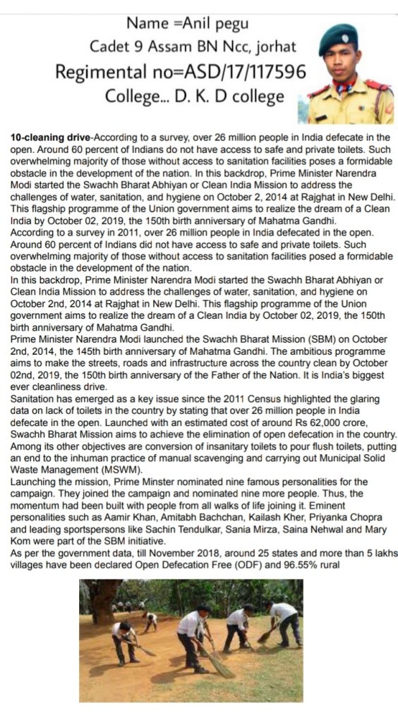 Anil pegu Cadet 9 Assam BN Ncc, jorhat Regimental no:ASD/17/117596