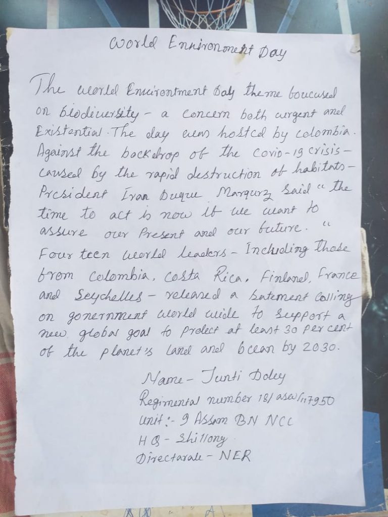 Name: Junti Doley Regiment No: AS18/SWA/117950 Unit:. 9th ASSAM BN NCC, JORHAT