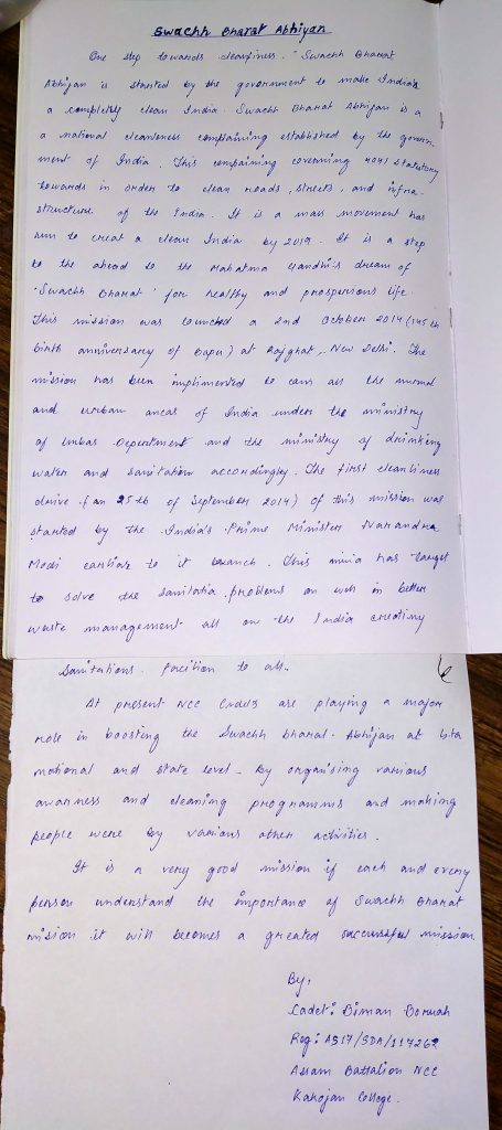 Name - Suo Mintu Borah College - Kakojan College Unit - 9 Assam Bn Ncc DTE - NER DTE Reg no - AS18SDA117299