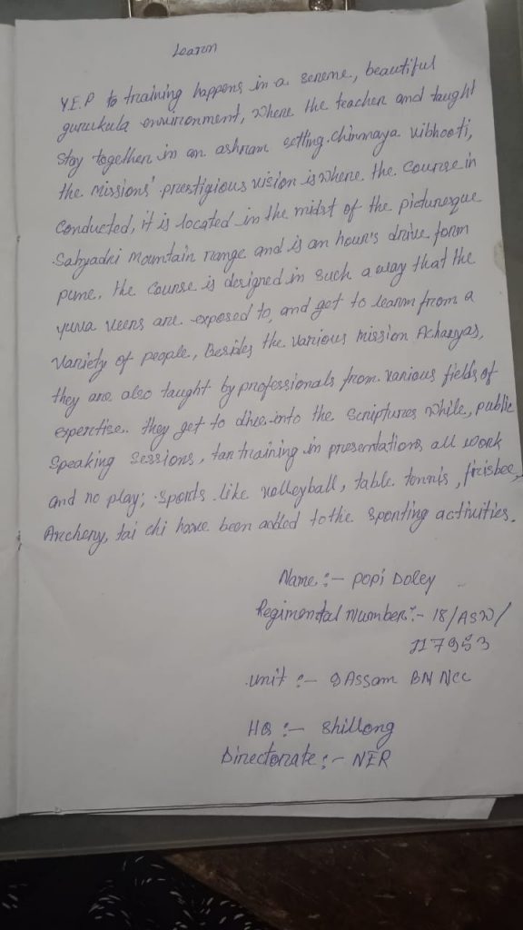 Name: Rosemoni Pegu Regiment No: AS18/SWA/117957 Unit: 9th ASSAM BN NCC, JORHAT